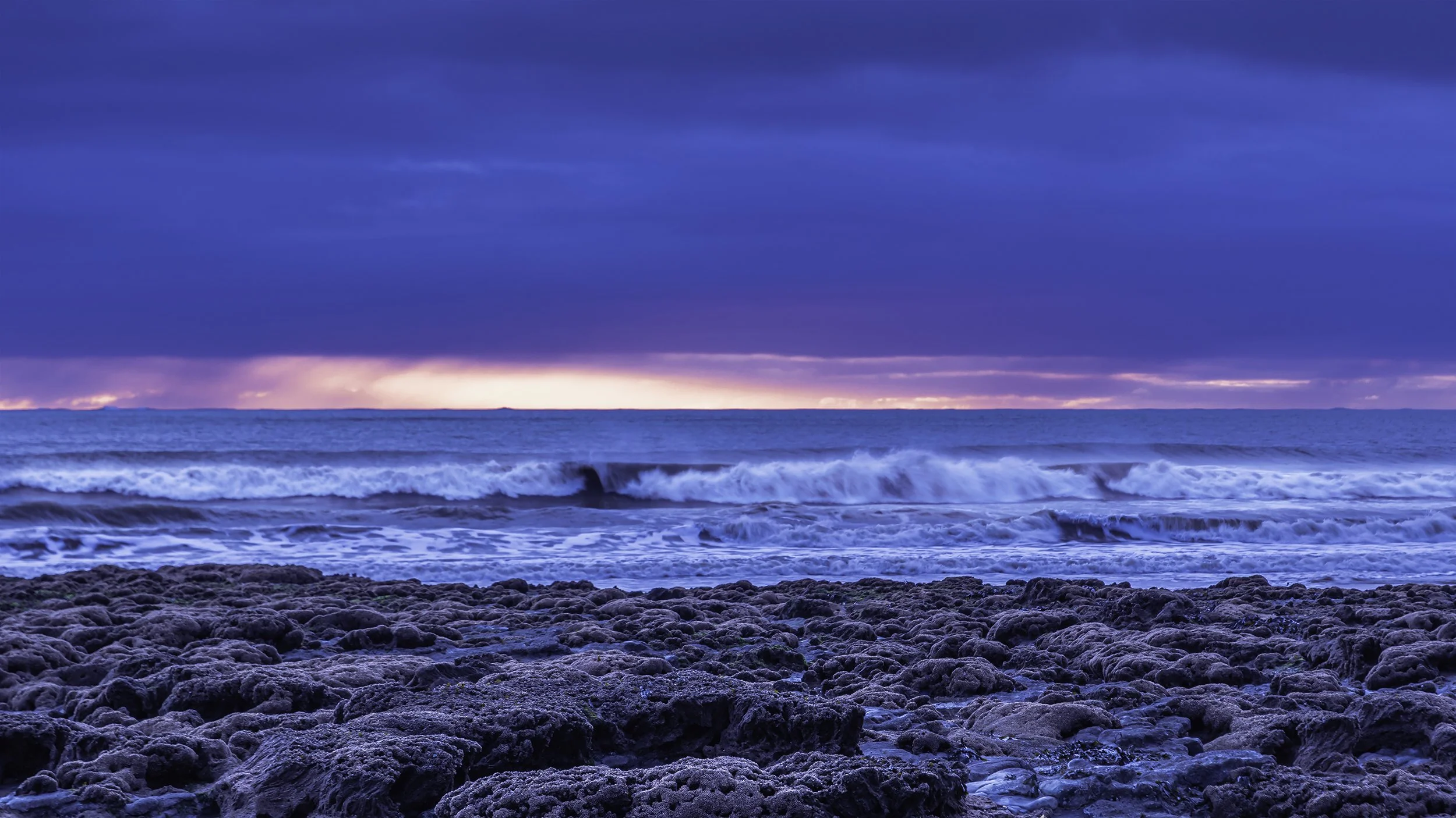 A thin strip of warm light under a heavy sky.