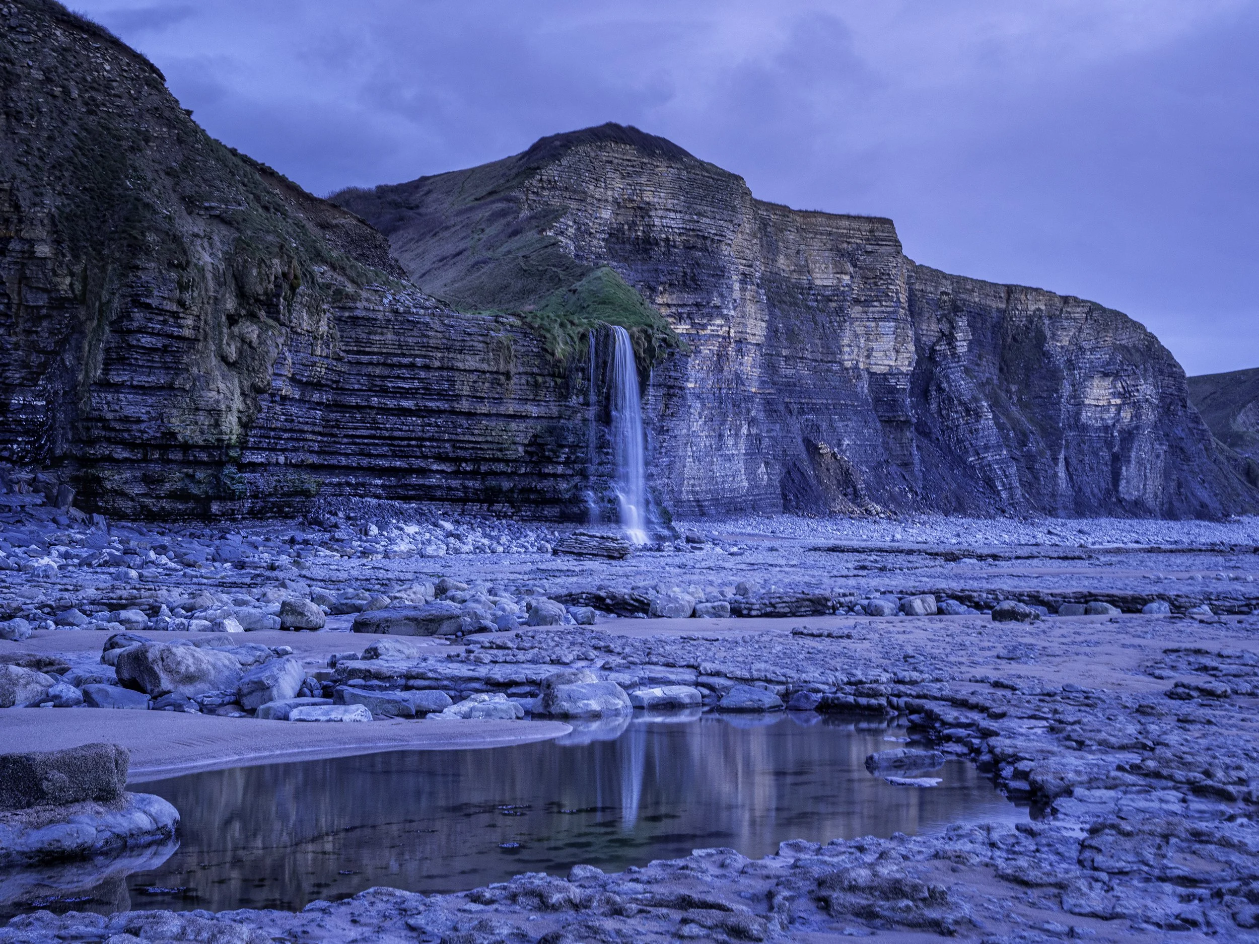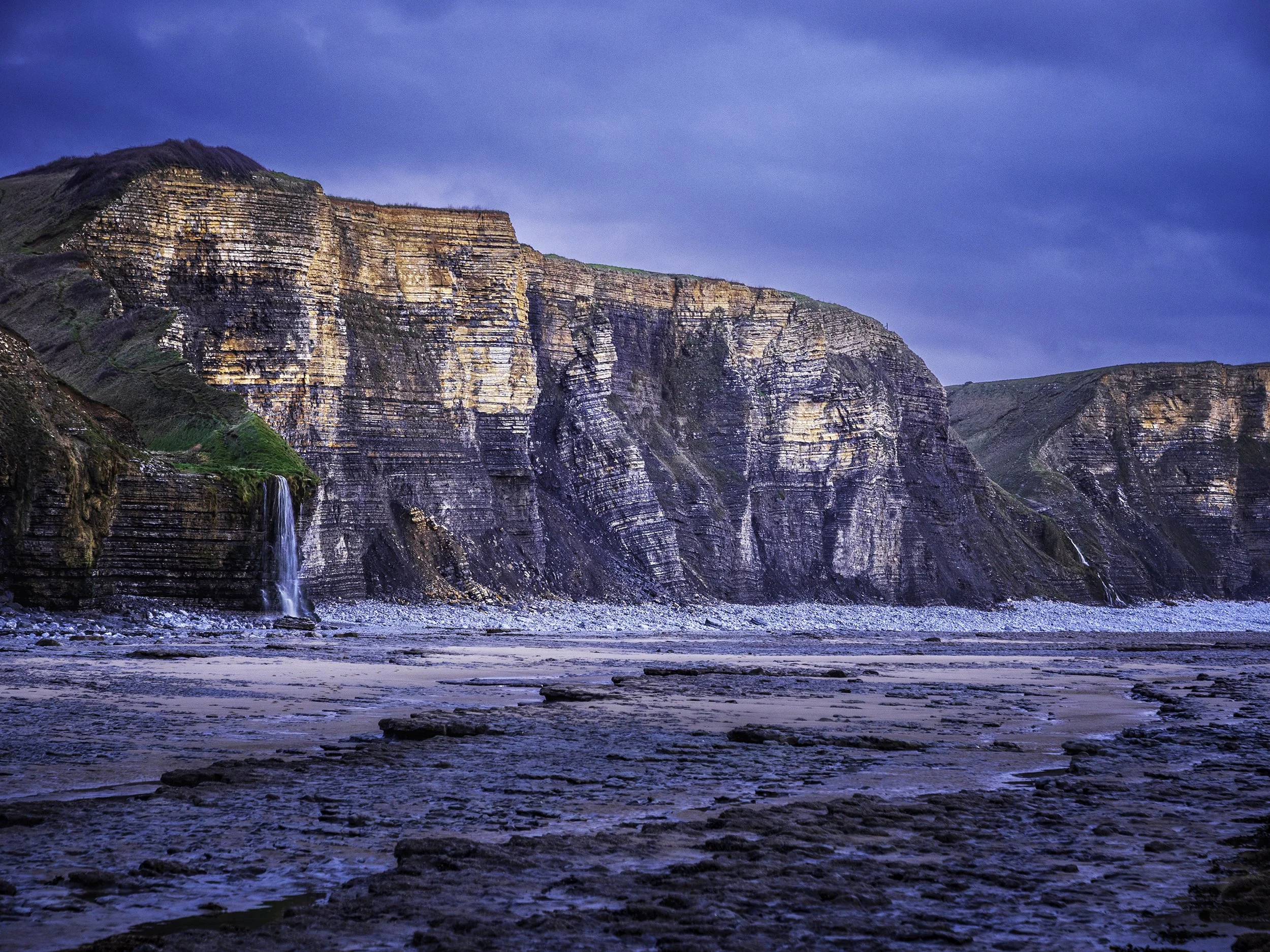 As we followed the cliffs toward Monknash, the waterfall appeared. It isn't a roaring cataract; it’s more of a polite Welsh leak. It spills over the edge as if it’s just noticed the sea and decided to join in. There’s something deeply satisfying about it. It’s been doing the exact same thing since the Triassic, which makes my complaints about a four-hour walk seem a bit petty.
